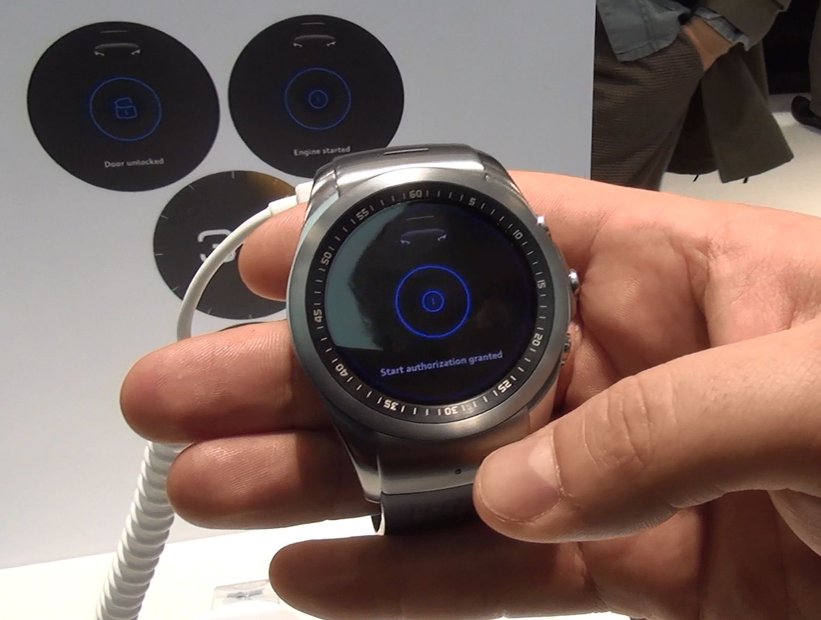 Ceasul inteligent de la LG își face treaba la fel de bine ca orice alt dispozitiv Android Wear. În fond e aceeași platformă. Secțiunea de customizare a fețelor și similitudinea cu un ceas obișnuit îl fac un produs și mai dorit. Interesant este că la stand aveau un demo realizat împreună cu Audi. Modelul R8 putea transmite informații despre nivelul de combustibil din rezervor către ceasul LG. Și nu doar atât. Prin NFC putem deschide mașina doar cu ajutorul ceasului, sau putem trimite din casă comanda de pornire a climatizării sau încălzirii habitaclului. Toate astea fără să mai scoți telefonul din buzunar.