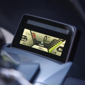 C Evolution oferă patru moduri de rulare – Road, Eco Pro, Sail și Dynamic. În modul Eco Pro nu prea poți face tu cam ce vrei, puterea este limitată, iar sistemul recuperează frenetic energie oricând este posibil. Cel mai prietenos mod este ”Road”. Aici ai toată puterea la dispoziție, decelerarea nu este atât de puternică în cazul rulării pe liber, doar 50% din energie este recuperată. Doar în cazul frânării se recuperează 100%. Destul de prietenos C Evolution și din punct de vedere al spațiilor de depozitare, sub șa încape generos o cască integrală. Display-ul central poate fi citit relativ ușor și în soare puternic.