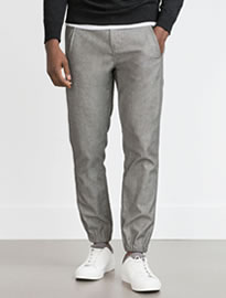 După atâția ani în care am văzut numai pantaloni skinny a venit momentul pentru pantalonii joggers, decupați în partea de jos și strânși cu un elastic. Acești pantaloni sunt versatili și pot fi purtați cu o cămașă Oxford dar la fel de ușor și cu un tricou și o jachetă de piele. Recomand să achiziționezi variantele smart care sunt mai elegante și astfel pantalonii tăi nu vor fi confundați cu pantalonii de antrenament.